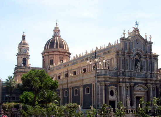 مرکز زندگی مدنی مدرن، Duomo Piazza است که توسط کاخهای قرن هجدهم احاطه شده و به خیابانهای وسیع باز میشود. از ساختار اصلی کلیسای جامع که توسط کنت نورمن راجر اول در سال 1091 تأسیس شد، سه قسمت از گدازه تاریک و بخشی از گذرگاه باقی مانده است. پس از زلزله 1693 توسط معماران فرا فیولامو پالازوتو و جیووانی باتیستا واکارینی (1702-1702) بازسازی شد. این کلیسای جامع شامل یادگارهای سنت آگاتا و مقبره آهنگساز وینچنزو بلینی، اهل کاتانیا است.