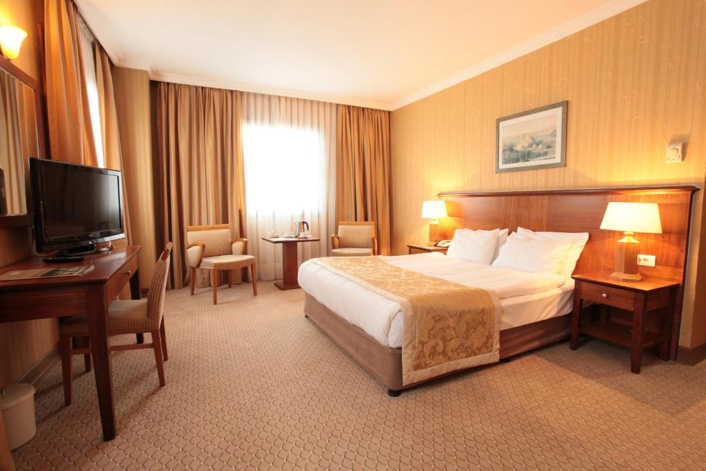 اتاق های تهویه مطبوع Grand Oztanik با رنگ های گرم و مبلمان چوبی تزئین شده اند. همه اتاق ها دارای وان حمام، مینی بار، چای و قهوه ساز، و سبد میوه خوشامدگویی رایگان هستند. برخی از اتاقها منظره دریا و شهر دارند.